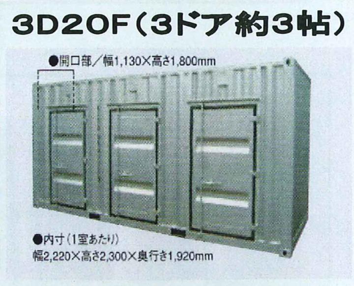 3ドア20フィートタイプ(約3帖) W2,438×D3,025×H2,591 |